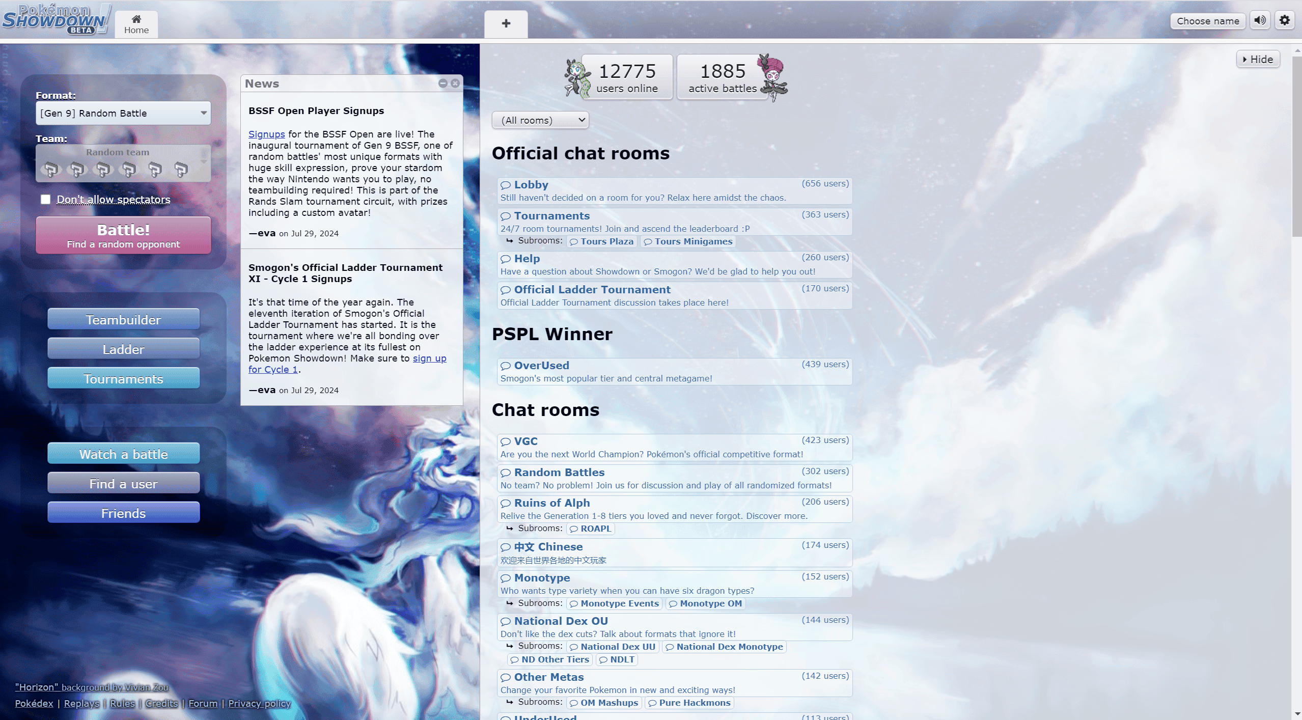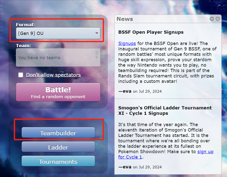 訪問 https://play.pokemonshowdown.com 進入遊戲首頁。