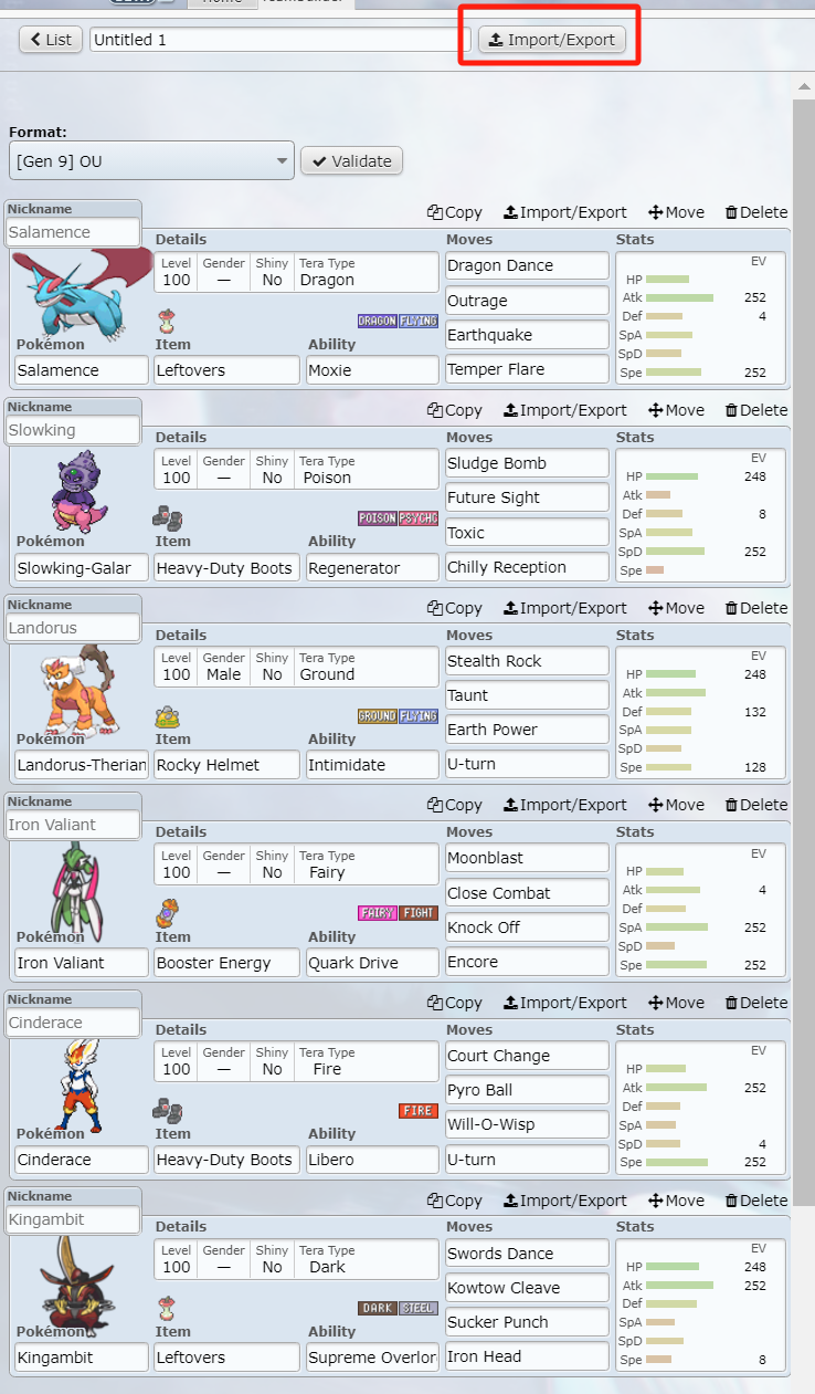 通過「Import/Export」(導入/導出),可以將我們配置的隊伍進行保存,在需要時就可以直接粘貼使用,也可以快速分享給他人。
